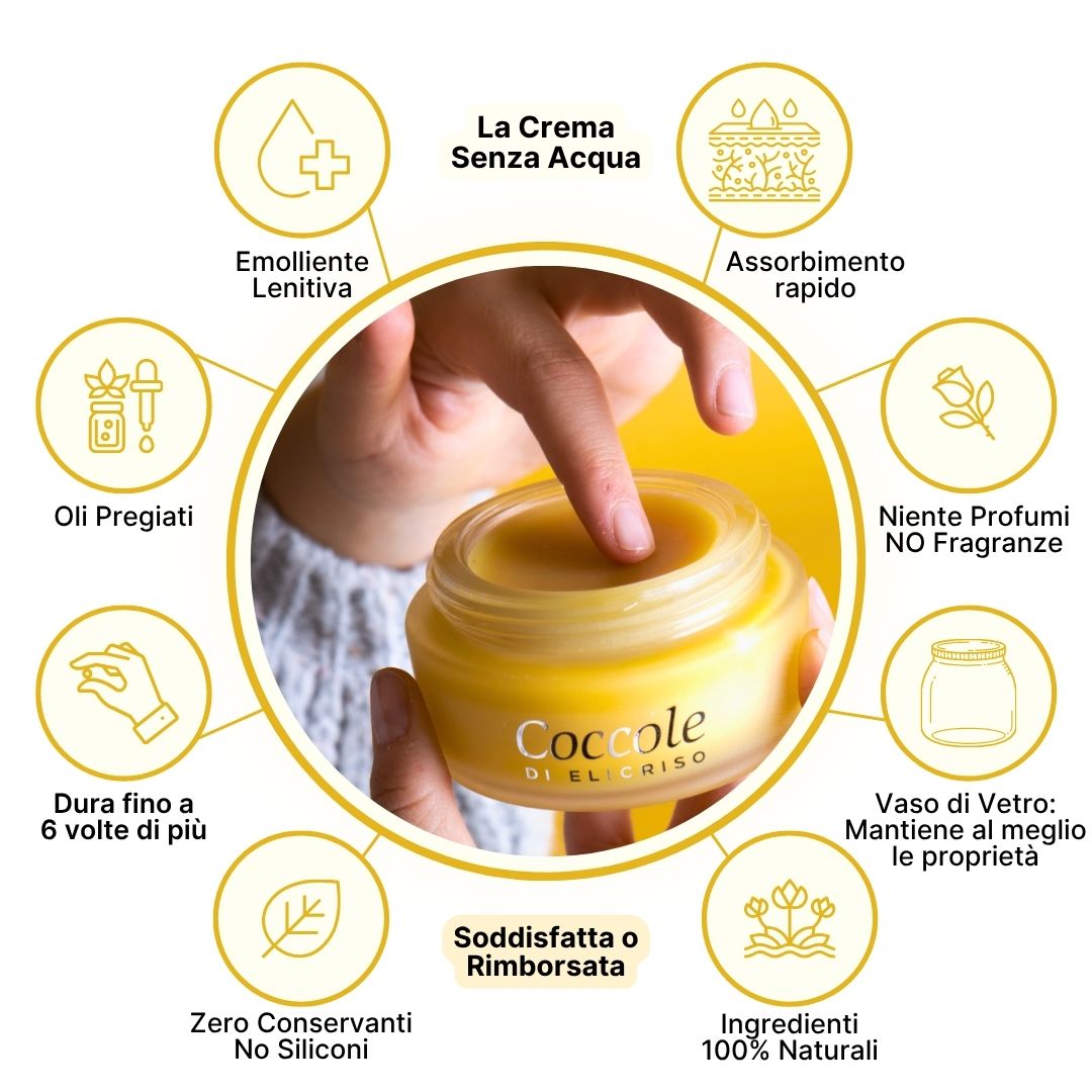 Essendo un concentrato puro, senza riempitivi, un solo vasetto di Coccole di Elicriso equivale a 6 creme normali
